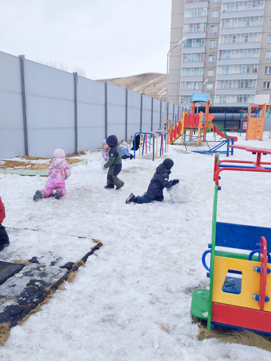 Весна входит в свои права, а на нашем участке ещё остался снег, и ребята с огромным удовольствием взялись за дело. Снег липкий: кто-то просто катал колобки, кто-то делал стену из снежных кирпичей, а кто-то снежного мишку! |