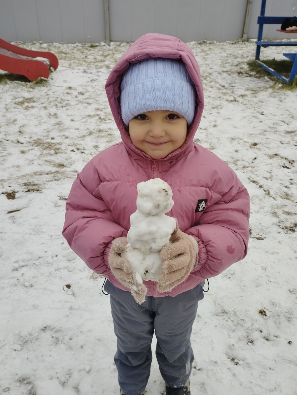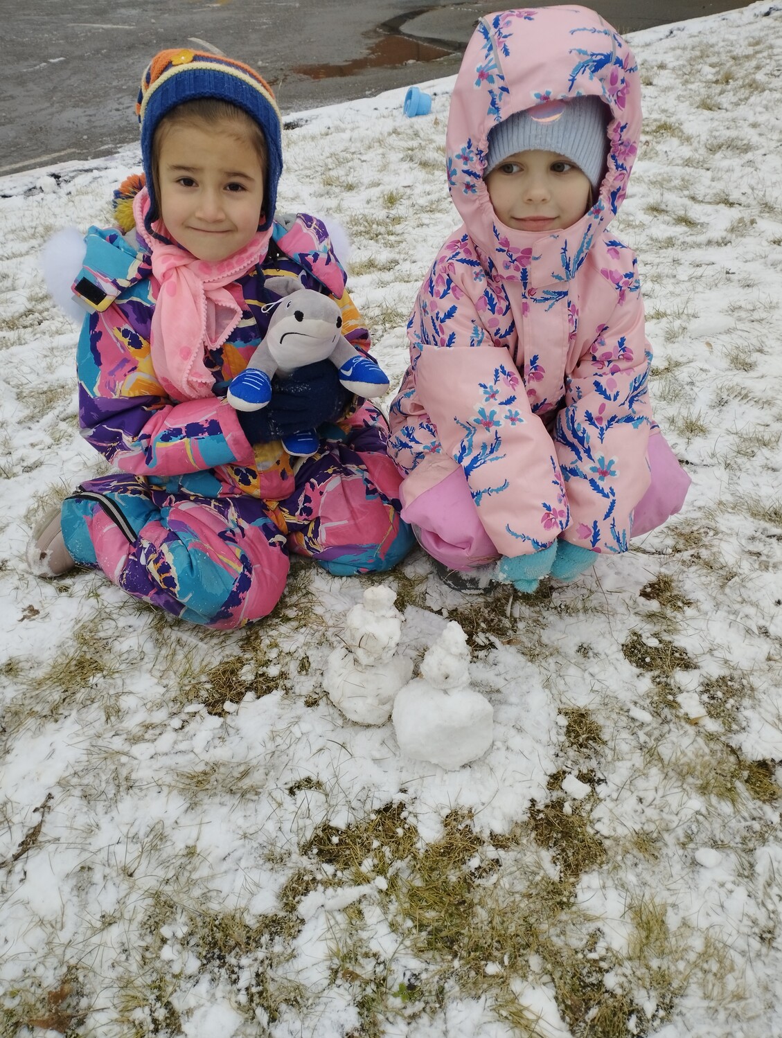 Первый снег всегда манит детей на улицу. Прогулка была веселой и продуктивной. Девочки и мальчики увлеклись созданием снеговиков и перевозом снега .