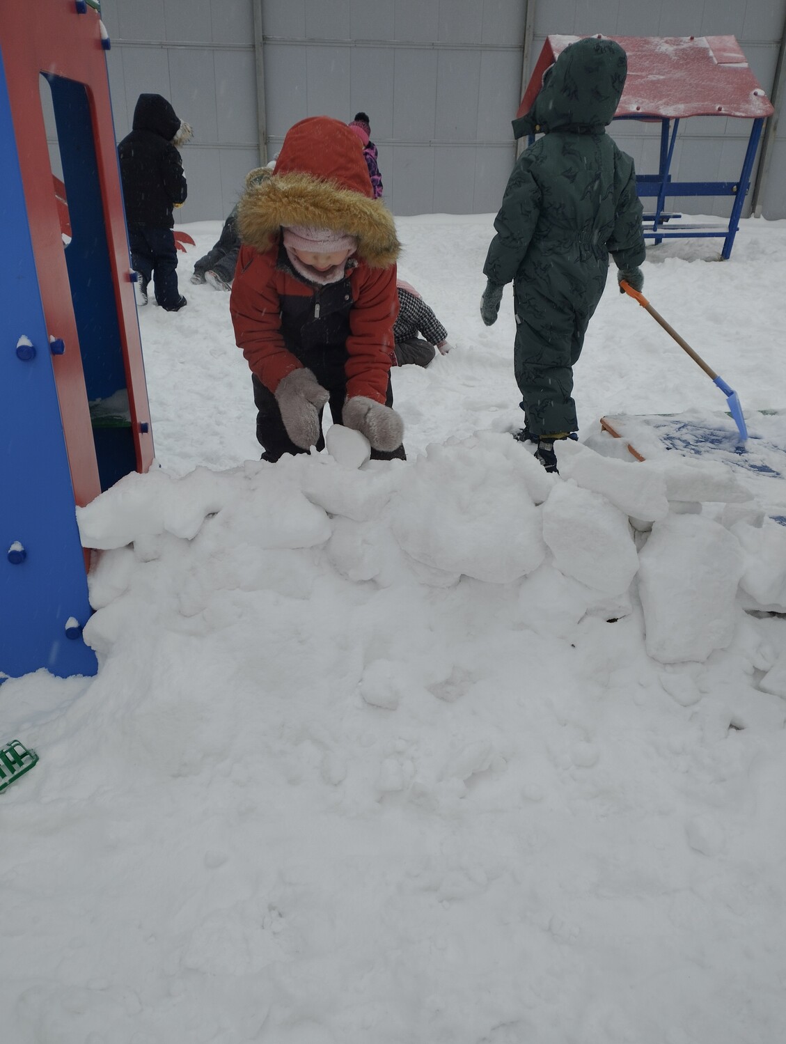 На протяжении этой недели держались морозы, но один день всё же был теплым и мы с ребятами были на прогулке. За праздники на территории прогулочного участку скапилось много снега. И конечно ребята,этому очень были рады!!! Они убирали снег, строили крепость ( заложили первую стену), делали " снежного ангела" и многое другое.