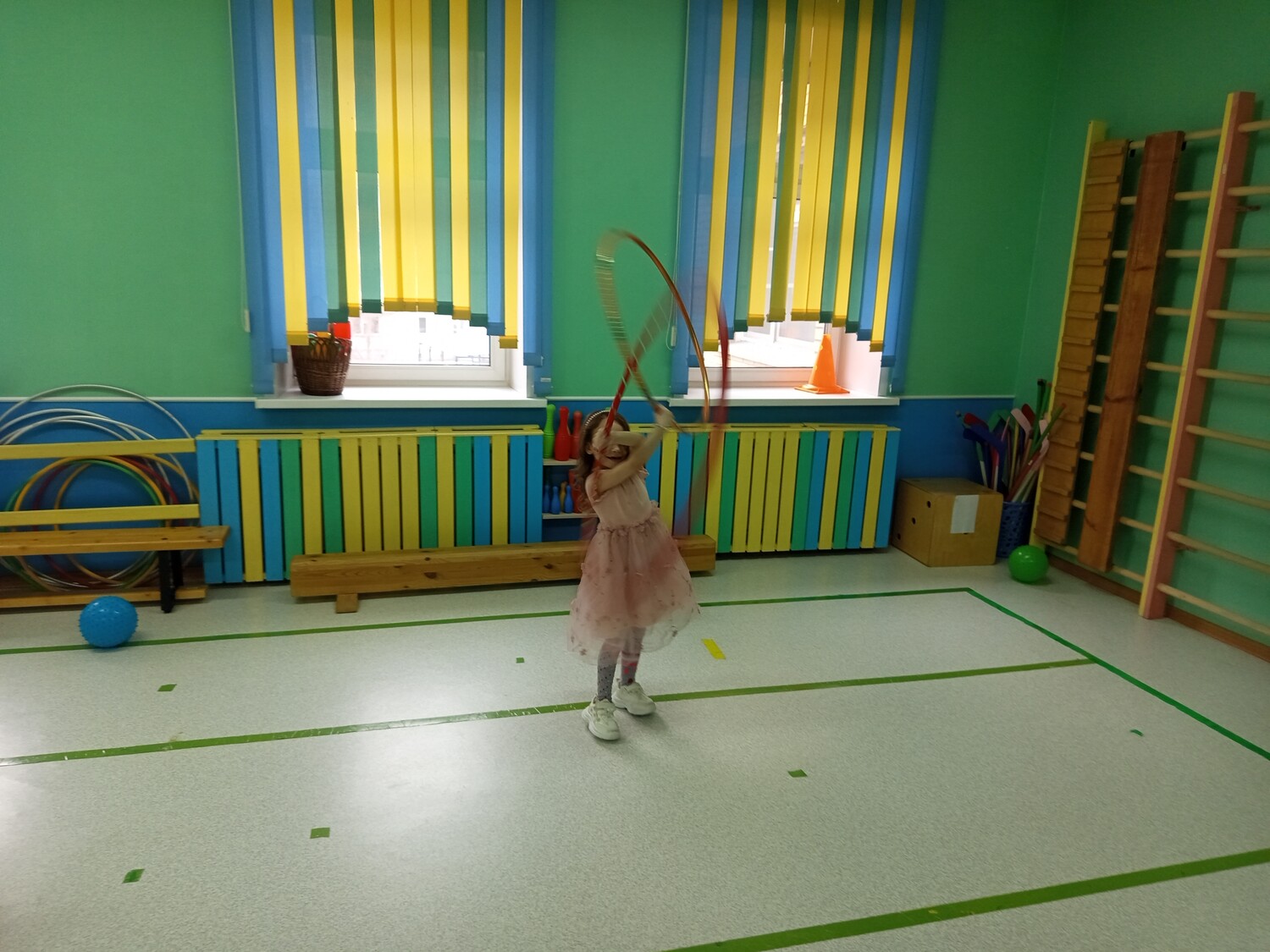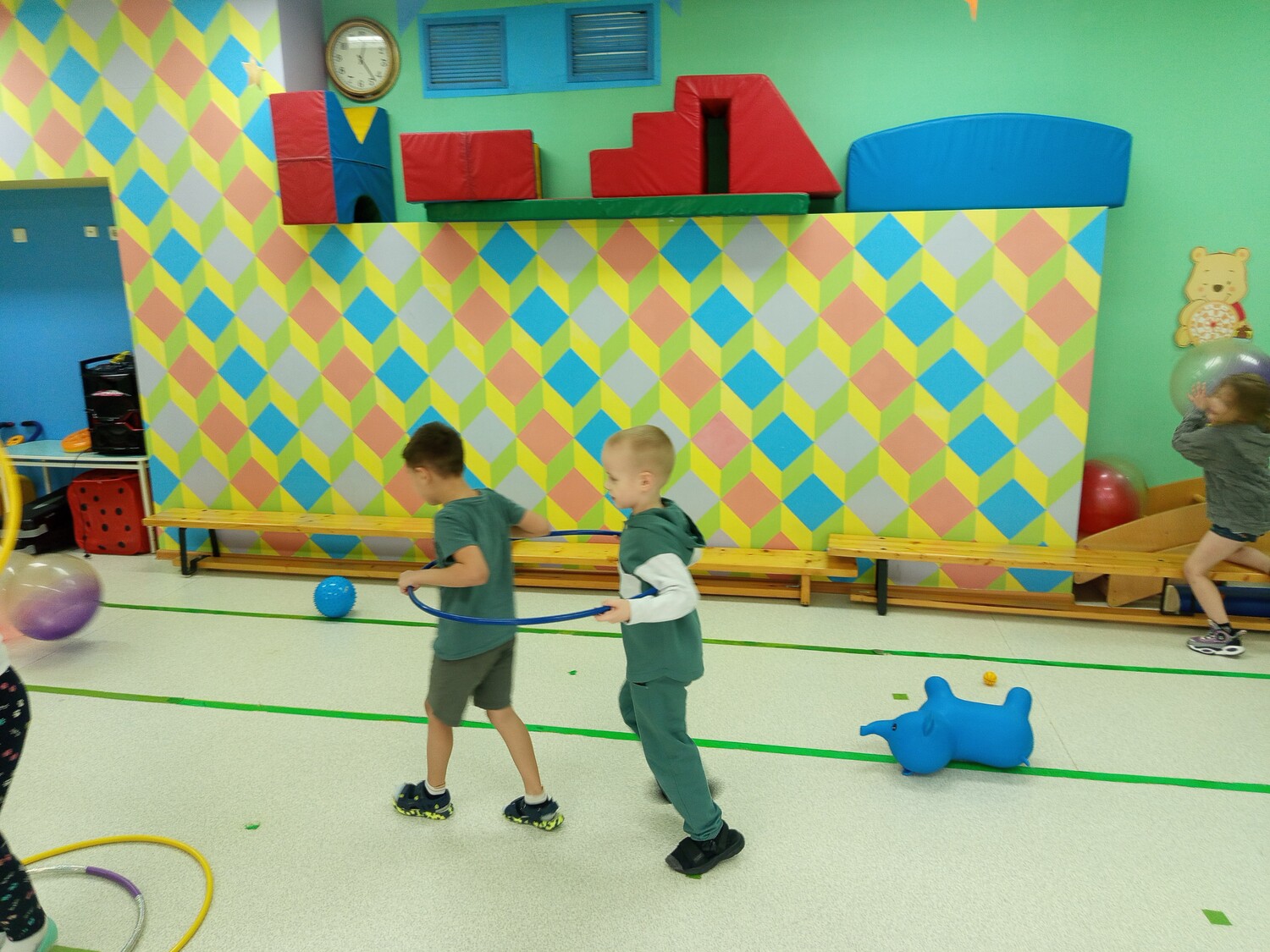 Поиграть с мячом, покрутить обруч, побегать<