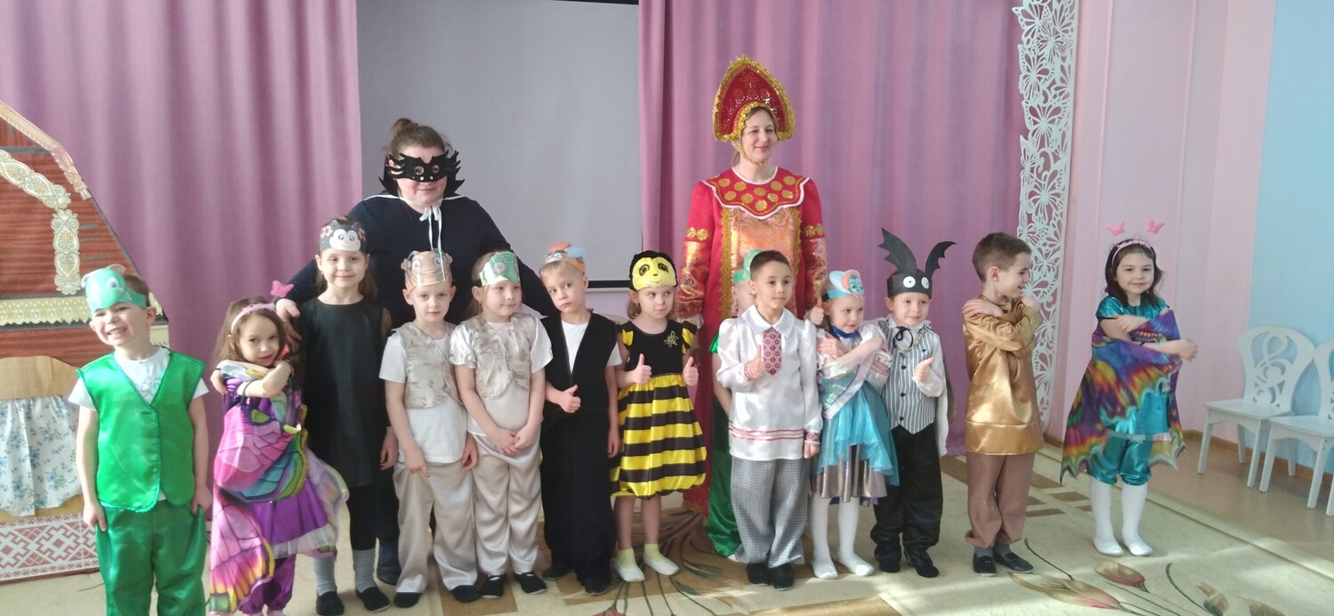 В старшей группе "Ромашка" состоялась премьера драматизации сказки "Муха-цокотуха" для родителей. Ребята с большим вдохновением, выразительно и эмоционально играли роли, удивляли зрителей своим артистизмом.