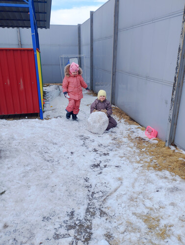 Весна входит в свои права, а на нашем участке ещё остался снег, и ребята с огромным удовольствием взялись за дело. Снег липкий: кто-то просто катал колобки, кто-то делал стену из снежных кирпичей, а кто-то снежного мишку! |